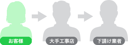 大手工事店やハウスメーカーでは、下請けの業者を使うケースがほとんどで、当然中間マージンが発生するので、コスト的にも高くなります。